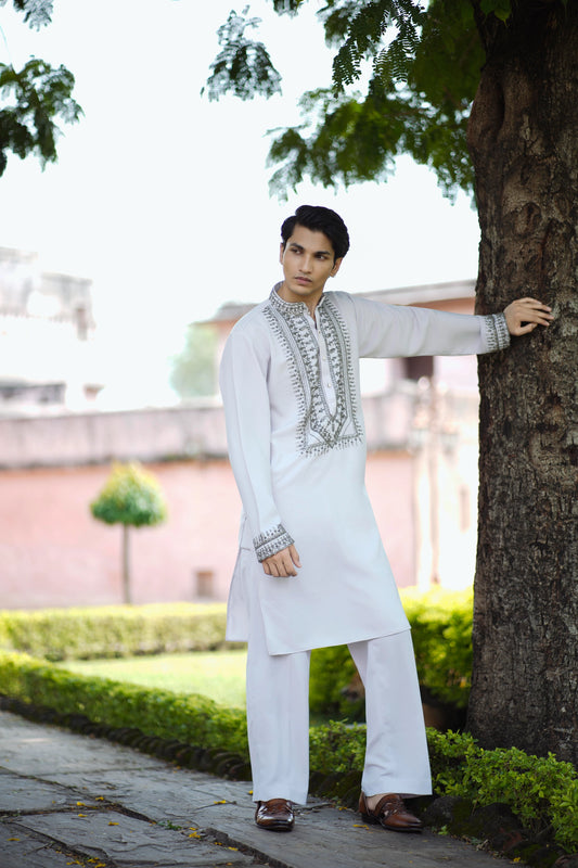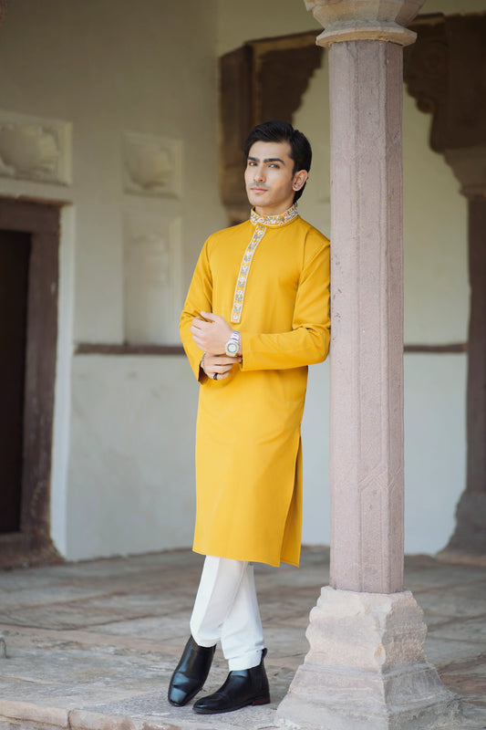 Traditional hues like ivory, cream, and saffron never go out of style. But don’t shy away from contemporary palettes—powder blue, blush pink, or deep wine are trending in men’s ethnic wear for 2025. Our kurta collection balances both classic and modern shades, ensuring versatility.